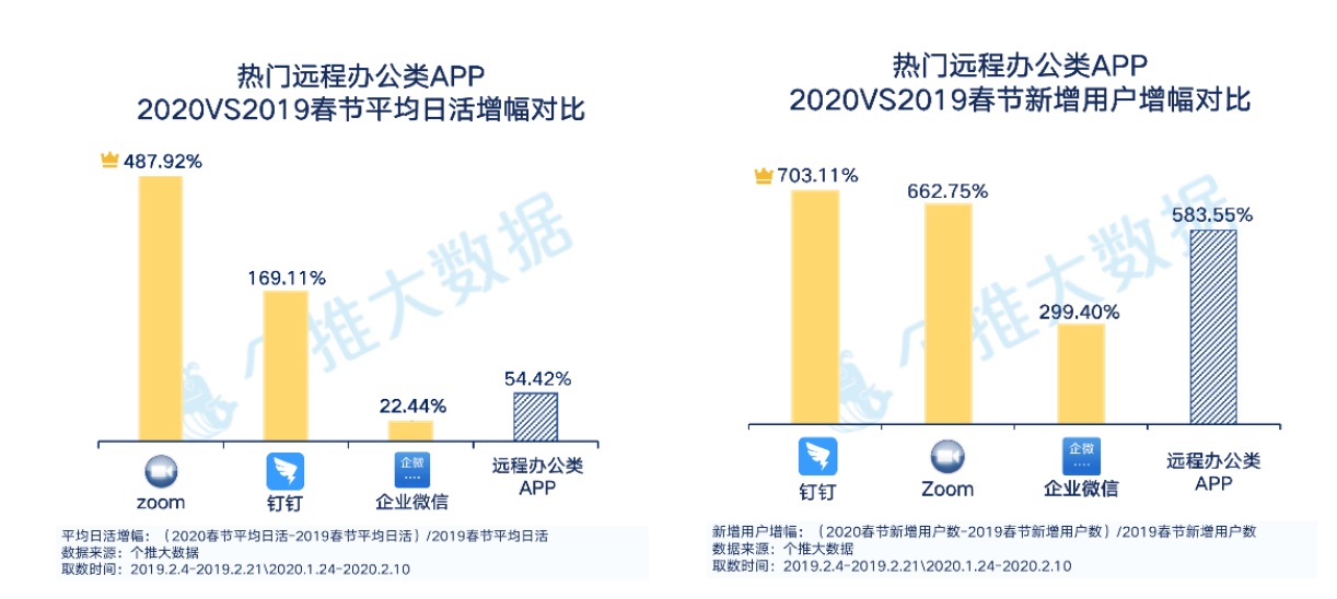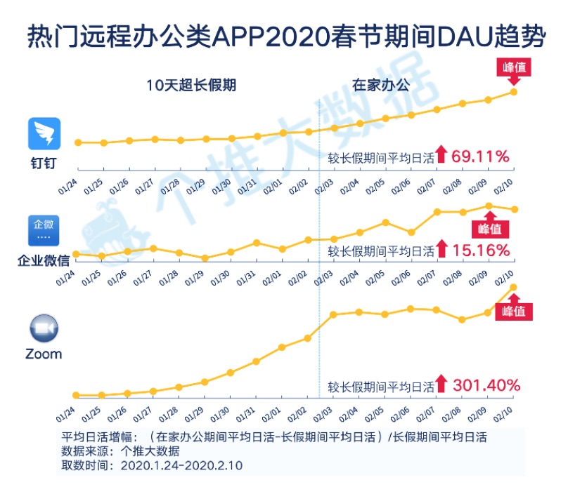 长途工作:钉钉热度持续攀升,Zoom添加微弱