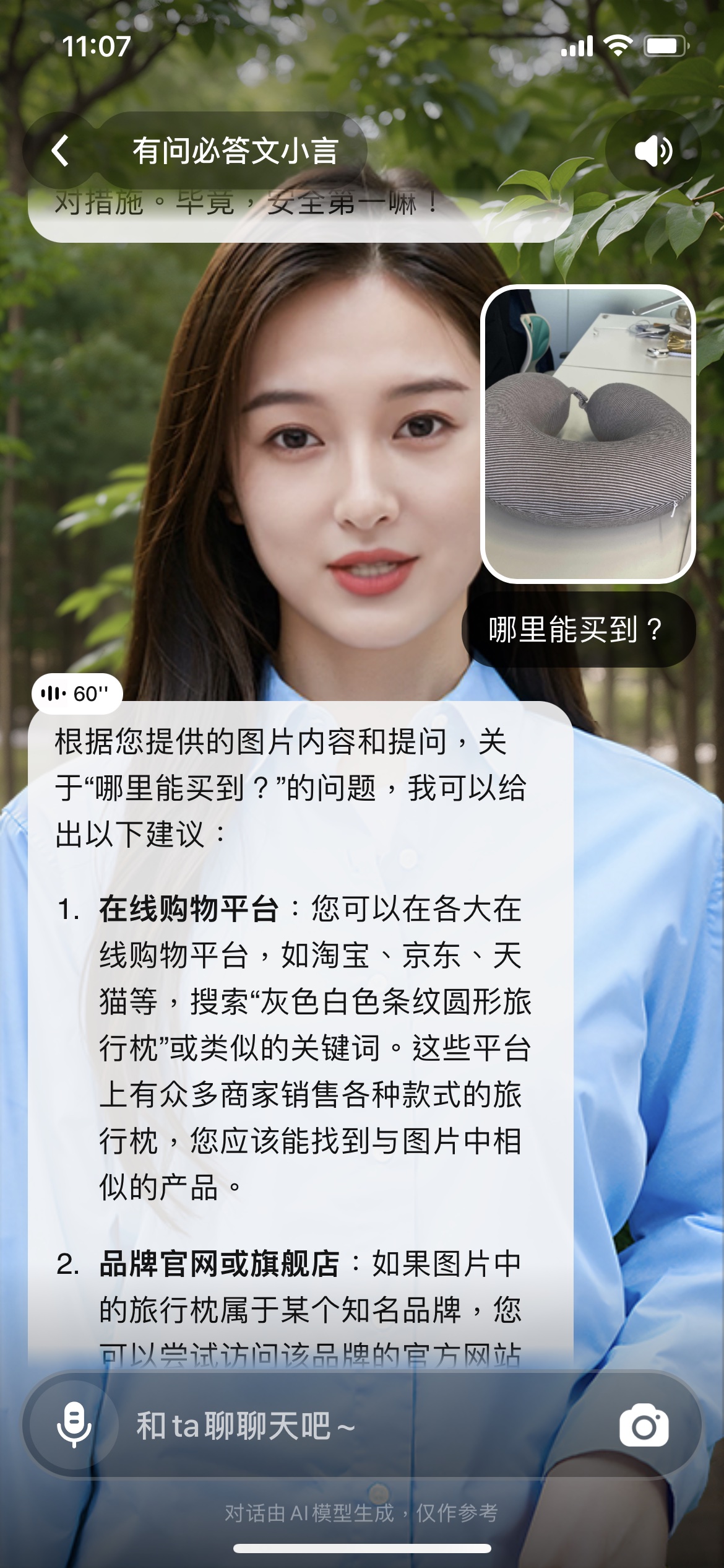 在体会过程中,笔者问询了截图中的问题,数字人都给出了相对令人满意的答复。而在摄影上传图片问询哪些途径能够购买时,数字人只是给出了抽象的话术,并没有给出购买链接或许产品示例(比方在淘宝上传图片就能直接翻开外形共同或附近的产品链接)。这一点体会并不好。