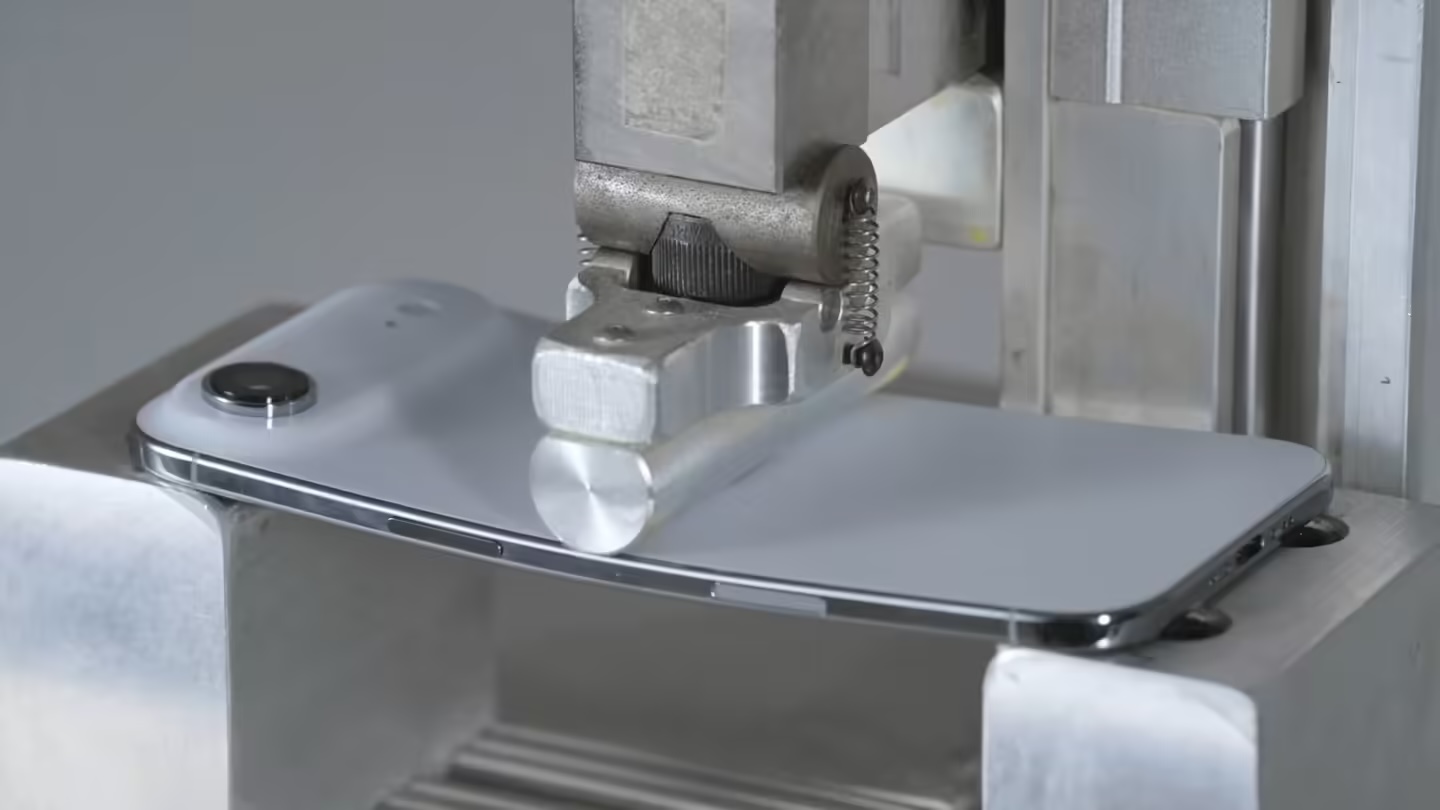 Allstate 运用其机器人测验设备“DropBot”和“BendBot”模仿常见意外状况。测验中,两款设备均能接受弯折压力并坚持正常运转,但在从约 6 英尺(约 1.8 米)高度正面朝下下跌时,屏幕当即碎裂。